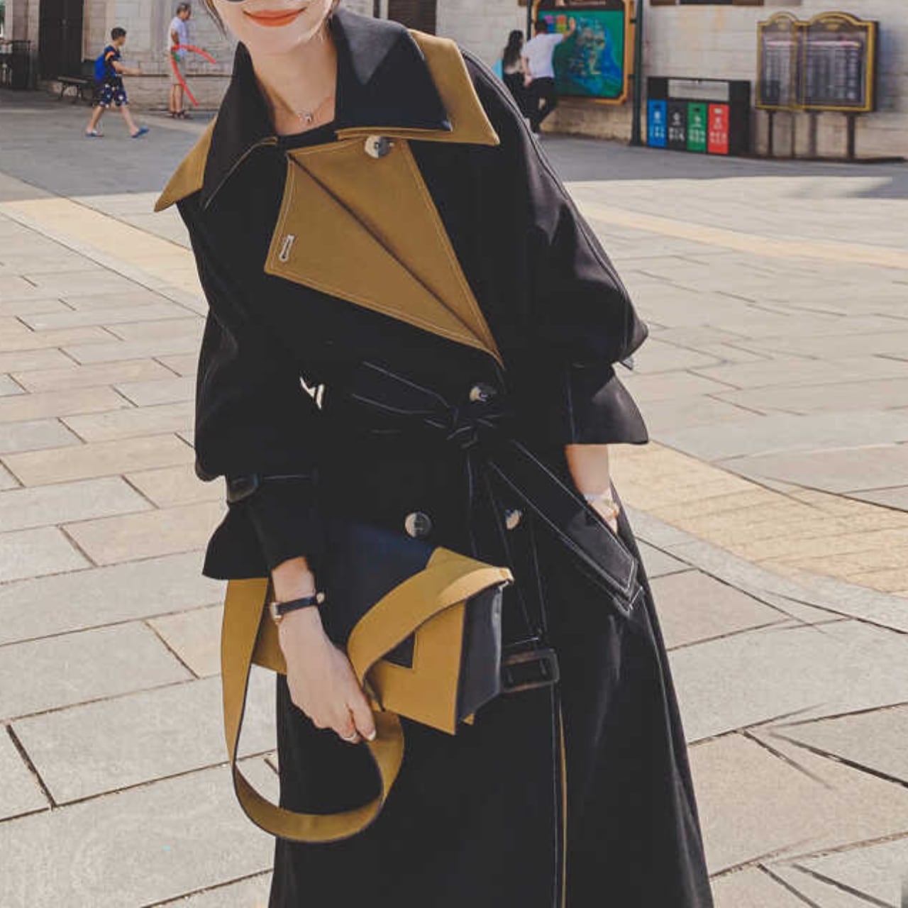 カラーレス バイカラー ロング丈 トレンチコート K1006