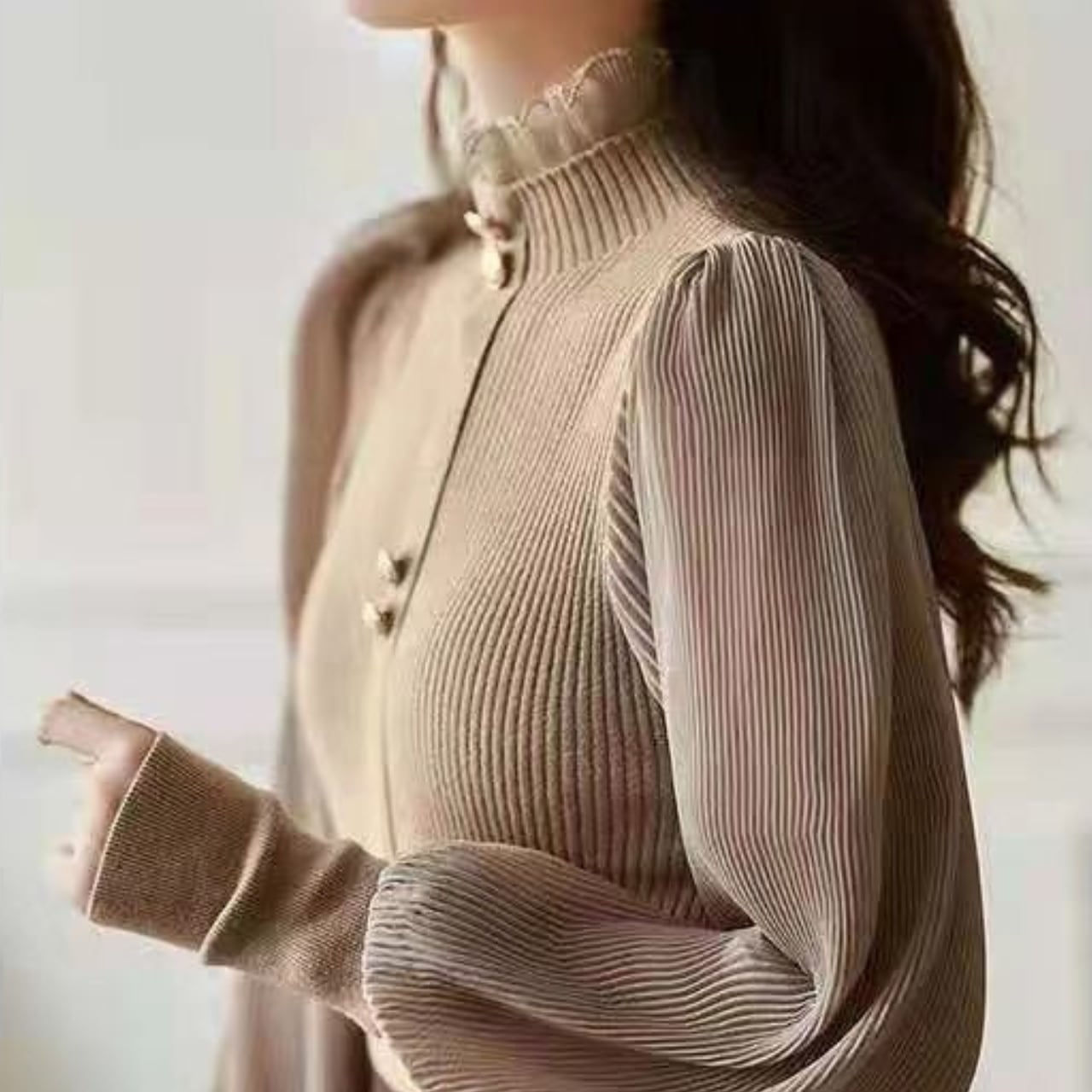 プリーツ袖バルーンスリーブハイネックニットトップス K1008