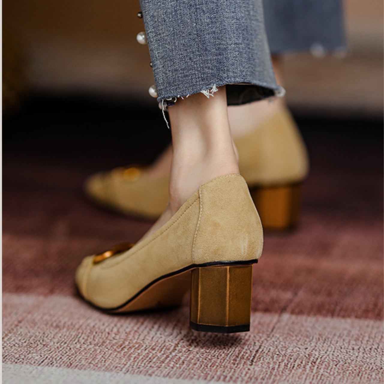 安定感のある太ヒールで歩きやすさを追求したパンプス。
