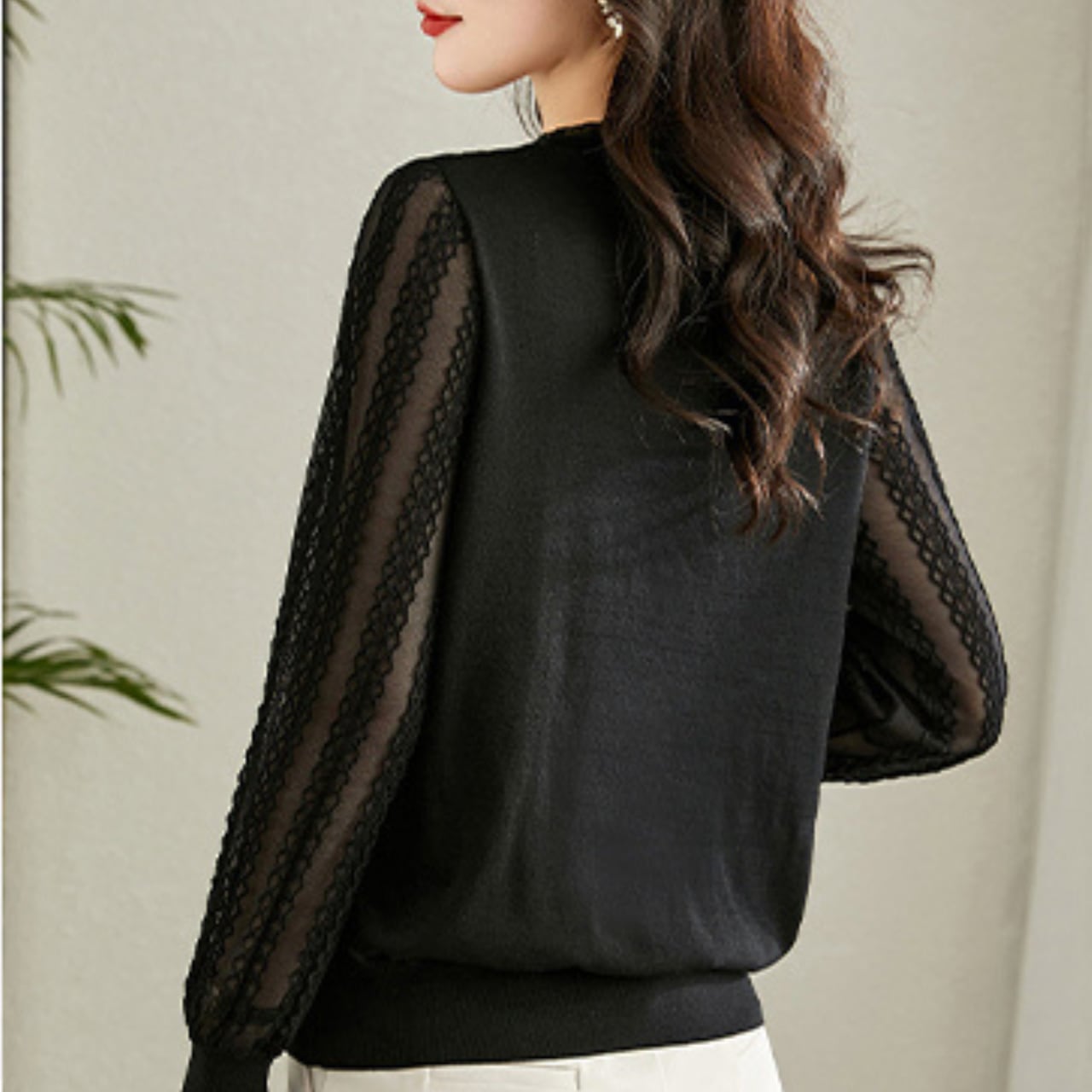 繊細なレースの袖が、さりげないアクセントになり、女性らしさを引き立てます。