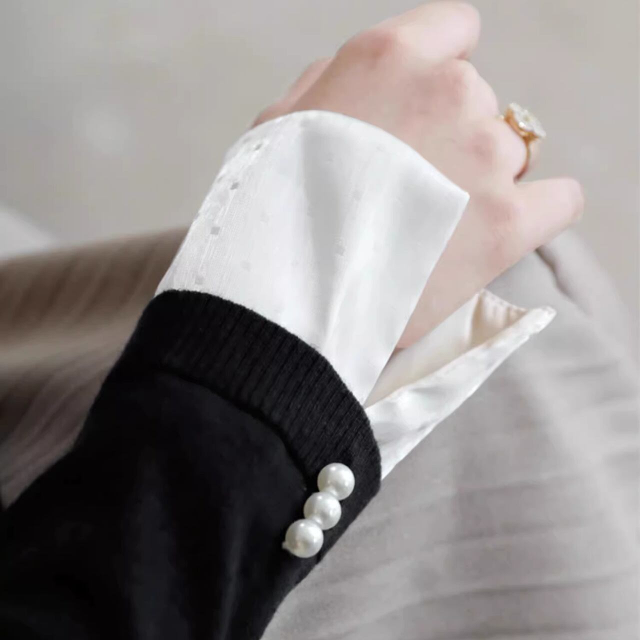 パール装飾付きVネックニットカーディガンレイヤード風デザイン K1037