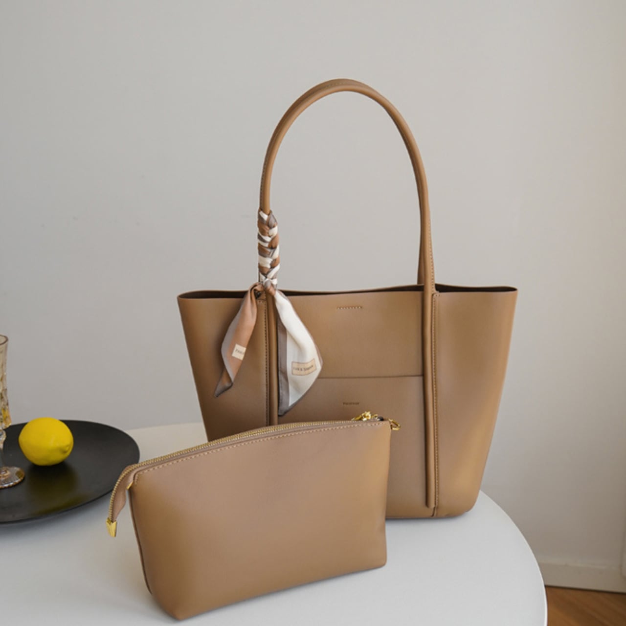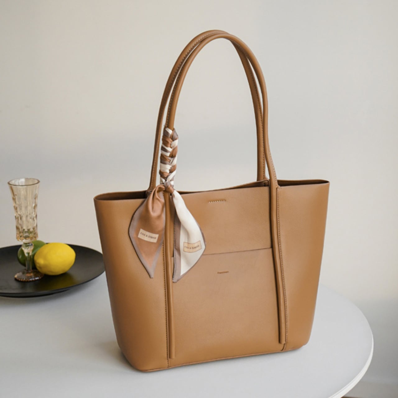 便利なフロントポケットがポイントの縦長トートバッグ。