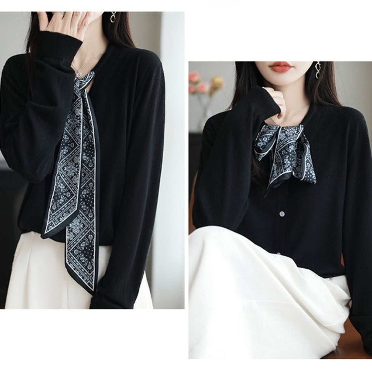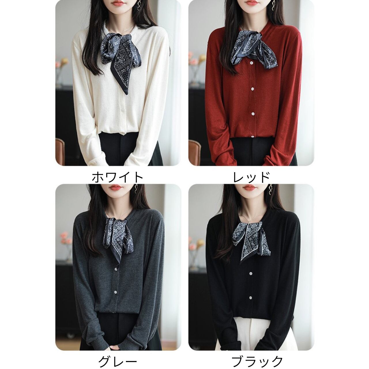 スカーフ付き ボタンフロント 長袖 ニットカーディガン K1079