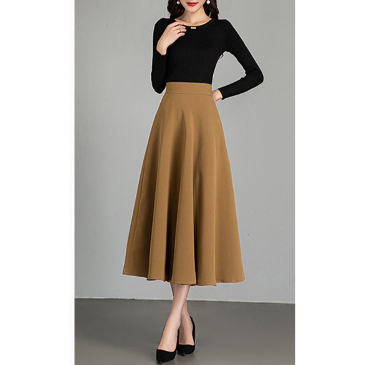 上品なAラインシルエットが魅力のミモレ丈スカート。