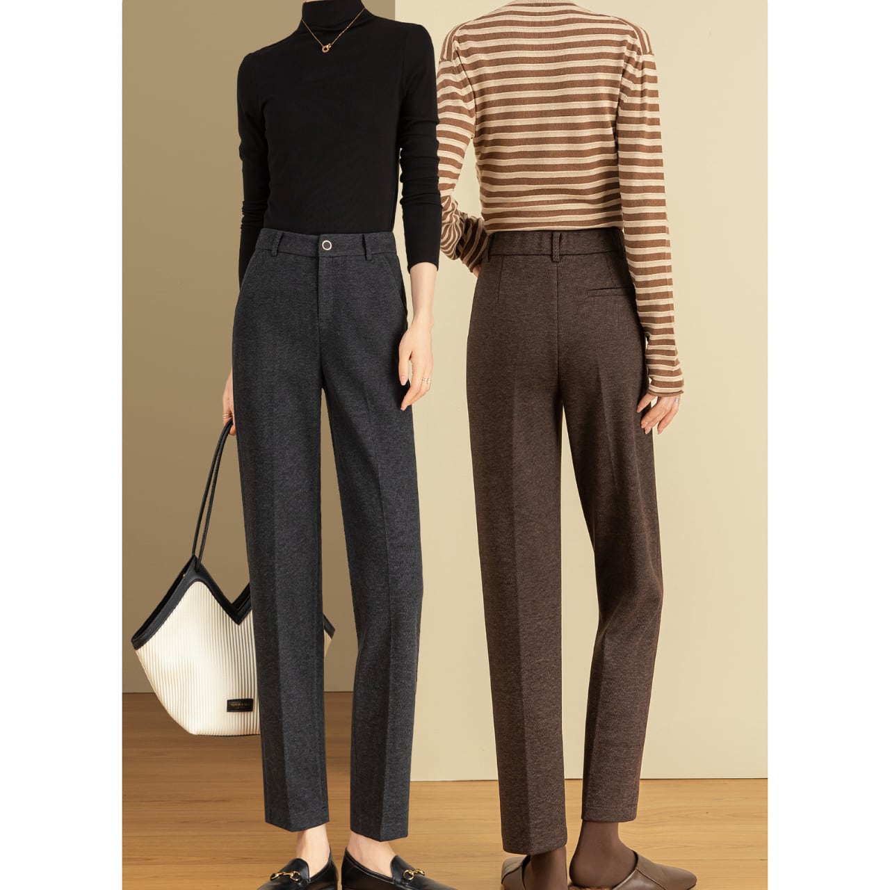 すっきりとしたシルエットが魅力のクロップド丈パンツ。