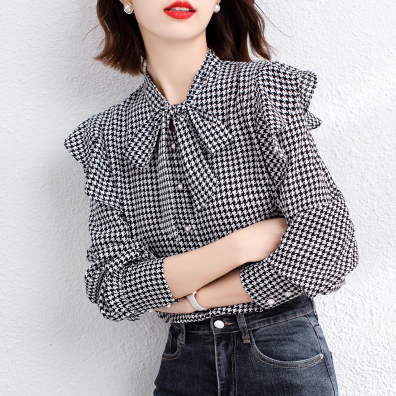 ボウタイ 長袖 フリル シャツカラー ブラウス K1175
