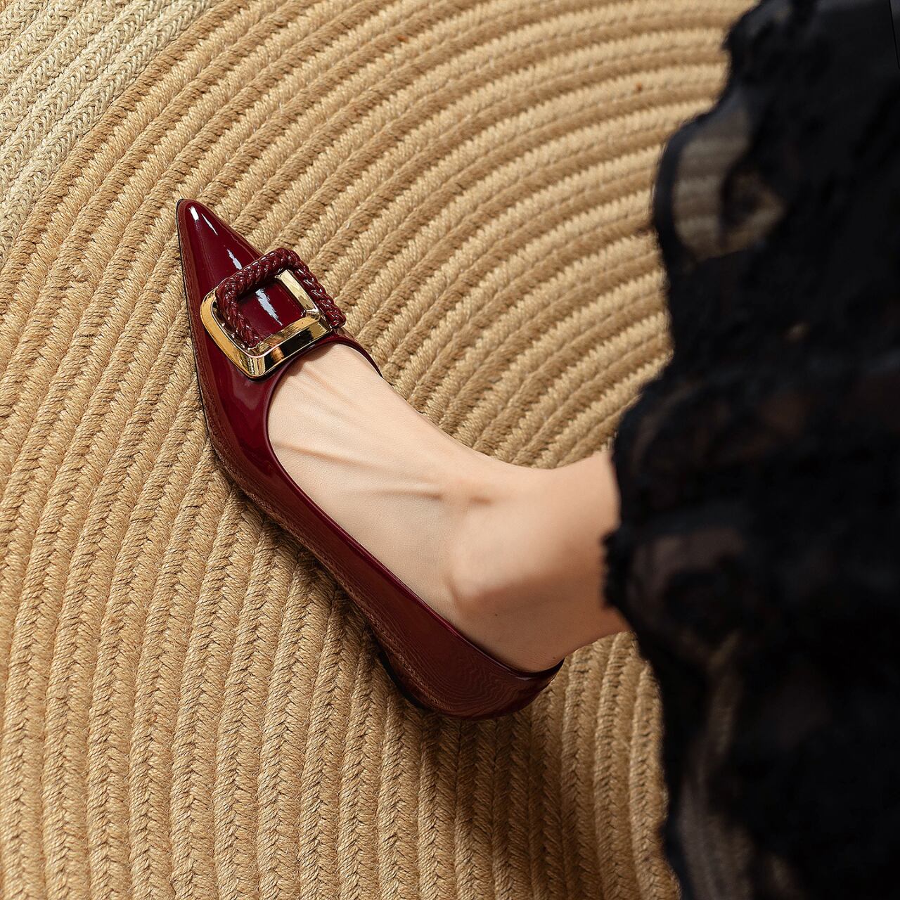 スクエアバックル ポインテッドトゥ ローヒールパンプス K1199