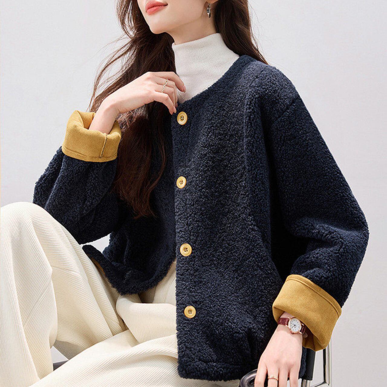 ボア素材を使用した、暖かくて着心地の良いジャケットです。